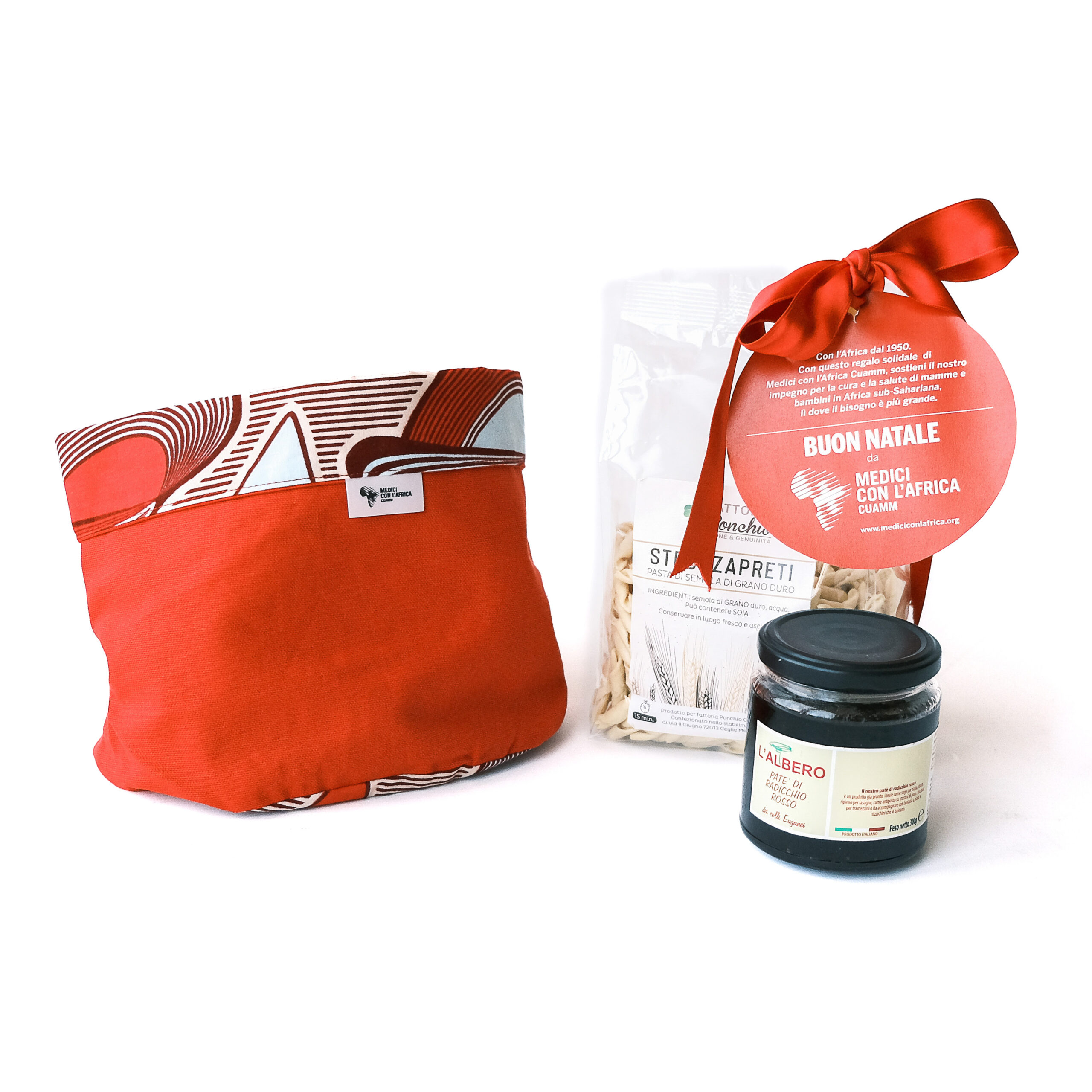 Il cestino portapane nella versione salata è composto da: un patè di radicchio e una confezione di pasta strozzapreti.