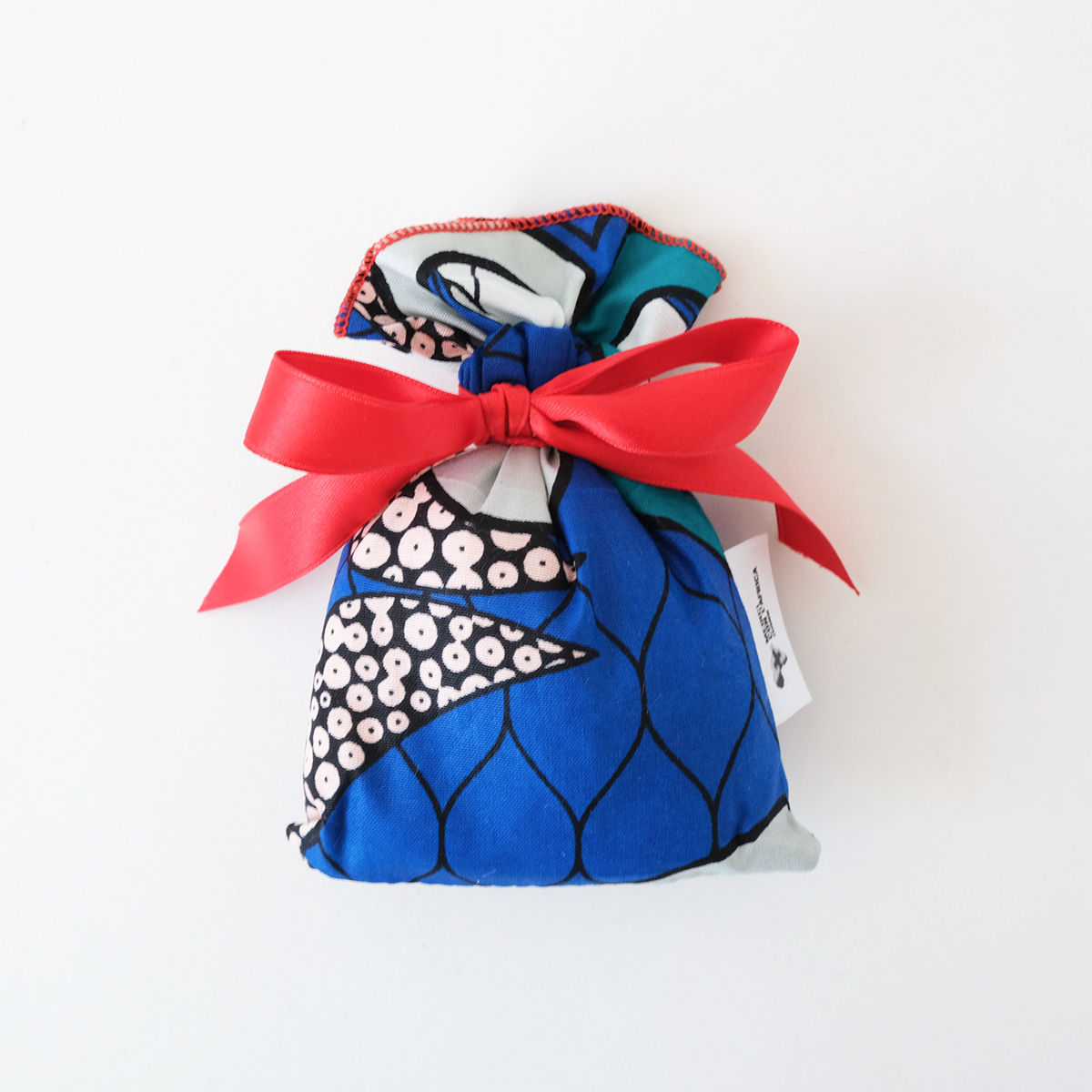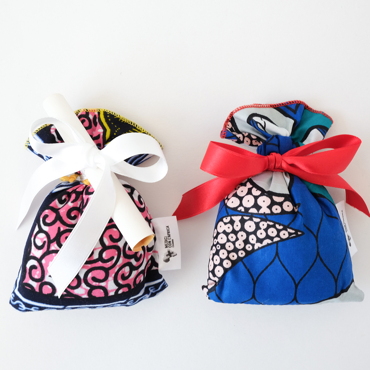 Misure: 15×11 cm Composizione: stoffa africana con chiusura in cordino. Ogni pezzo è unico e lavorato a mano e per gli ordini si richiede dunque un preavviso di almeno 15 giorni. Non è possibile scegliere le fantasie, che cambiano periodicamente in base alle stoffe disponibili. Salvo diverse indicazioni, le spedizioni saranno assortite.