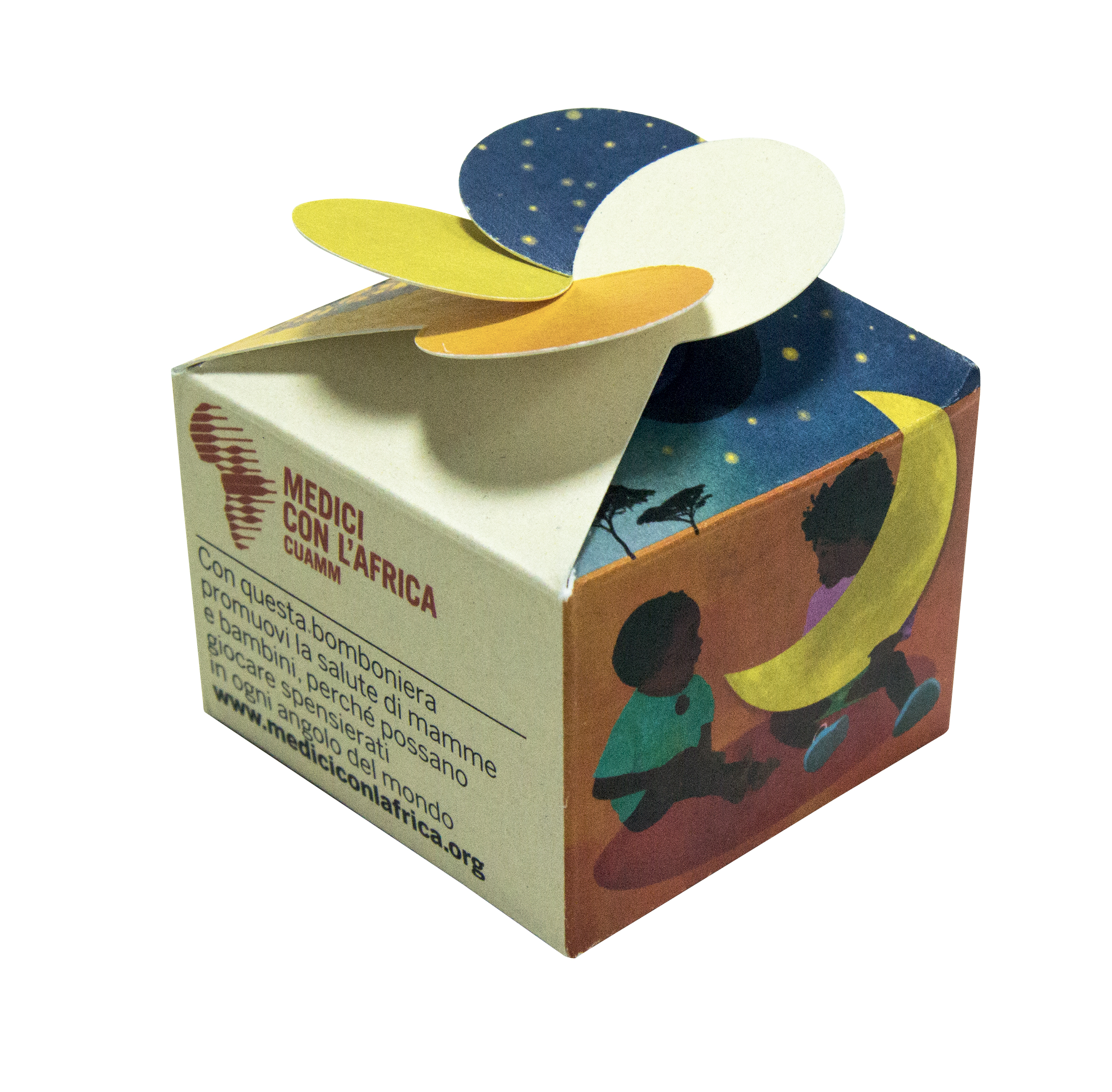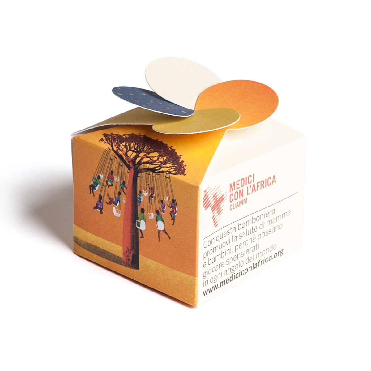 Per ogni eventuale richiesta, ulteriori personalizzazioni del biglietto e la proposta di altri gadget come bomboniere puoi scrivere una mail all’indirizzo bombonieresolidali@cuamm.org oppure telefonare al numero 0498751279 (referente: Serena).