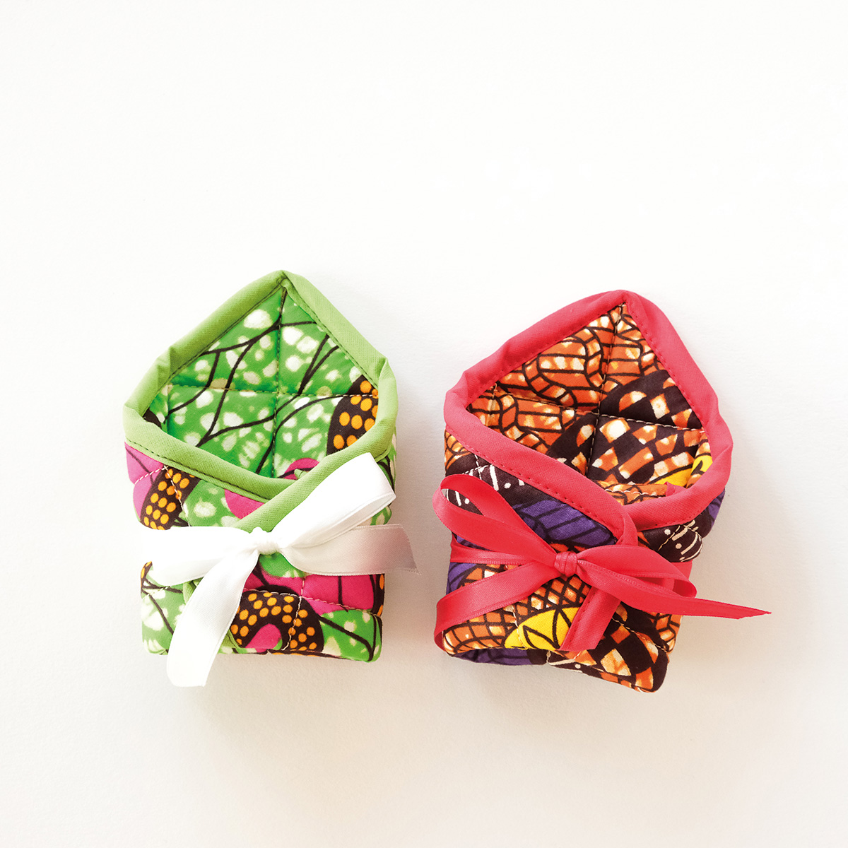 Con le nuove presine imbottite in tessuto africano confezionate, lasci un ricordo originale ed utile dei tuoi momenti speciali: i colori africani ricorderanno ai vostri invitati ogni giorno il vostro gesto solidale.